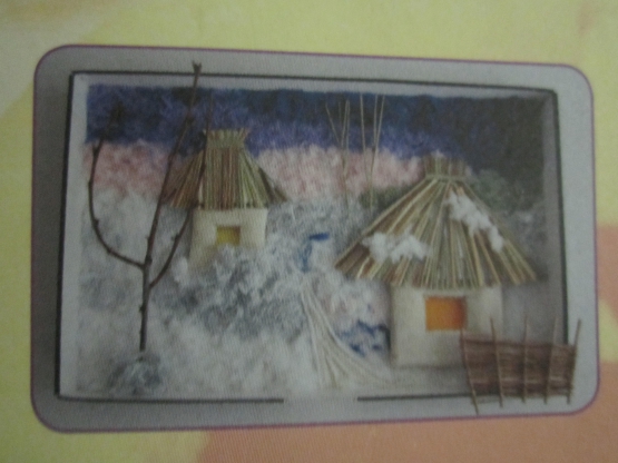Также из сухих веточек сделаем заборчик. Наша картина готова.