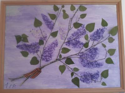 Данную композицию, я делала к 9 мая, поэтому веточки сирени перевязала георгиевской лентой.