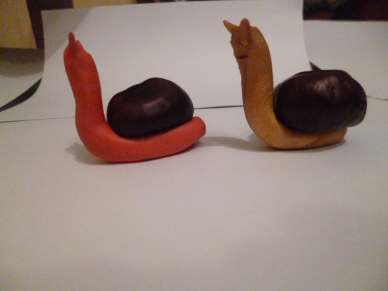 Осень самое прекрасное время года, хотя иногда на улице пасмурно и дождливо. Но нам с ребятами никогда не скучно, мы всегда находим себе интересное занятие, развлечение. Наши прогулки мы превращаем в интересные, сказочные путешествия. На своем участке мы насобирали много каштанов и сделали из них много разных поделок из природного материала. Много делали работ из каштанов. это были улиточки, мишки, уточки, кошечки, собачки, зайчики, гусеницы, олени, ежики, грибочки. Очень много можно придумать разных, интересных поделок из каштанов. Вот такую интересную, маленькую, красивую улиточку сделала наша Алиса.
