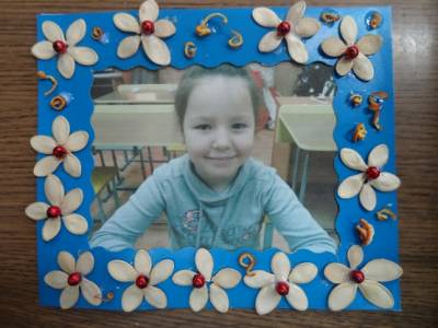 И закипела работа! Клей мы использовали акриловый декупажный. Дети склеили 2 детали рамки.